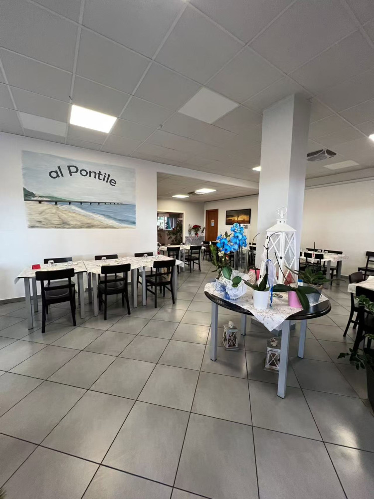 La cucina, di 25 mq, è completamente attrezzata con dotazioni professionali e permette di iniziare l’attività fin da subito, senza necessità di ulteriori investimenti.