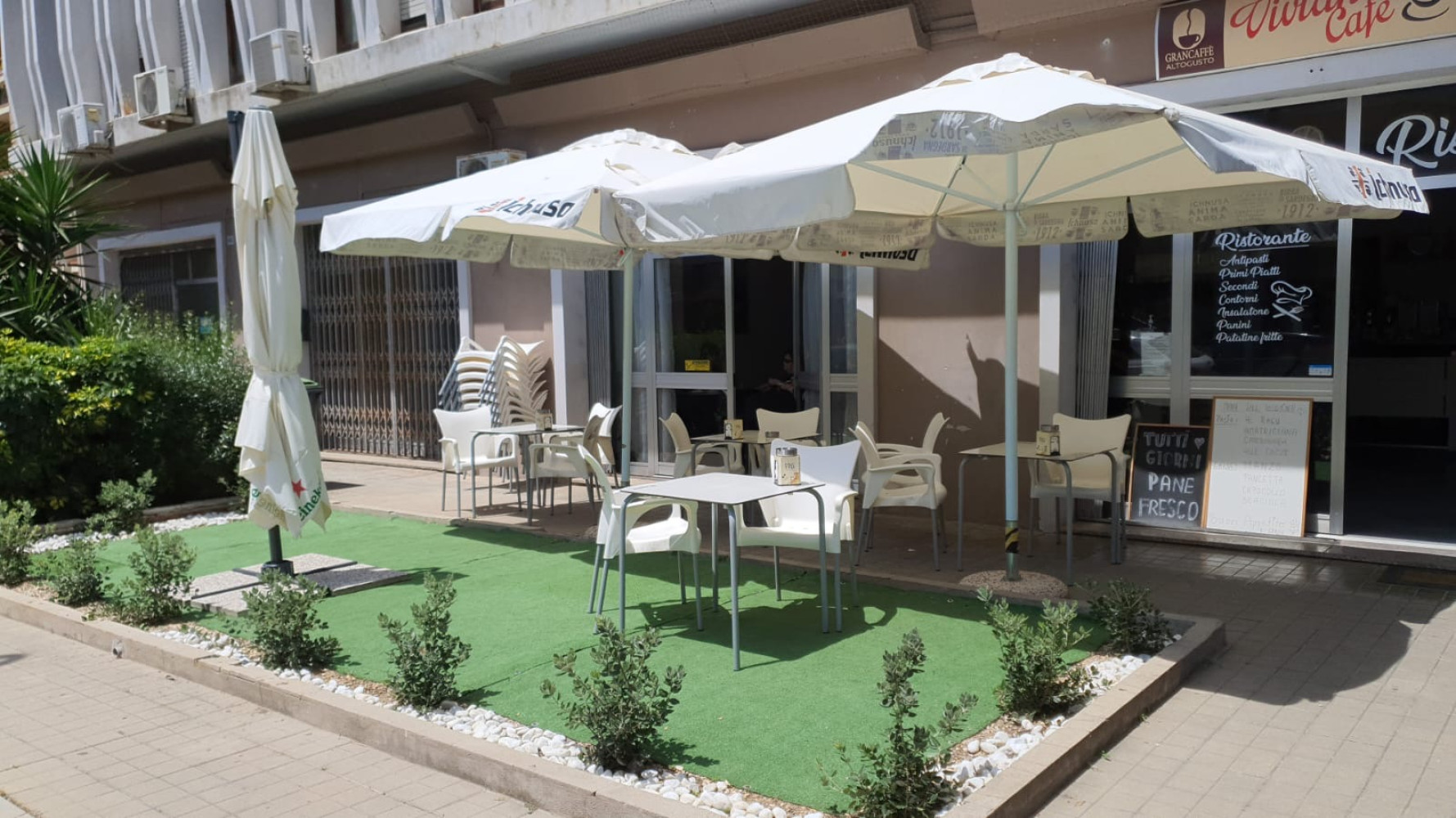 All’esterno, il locale dispone di 120 mq di terrazze, perfette per il servizio estivo, per eventi privati o per aumentare la capienza durante la bella stagione.